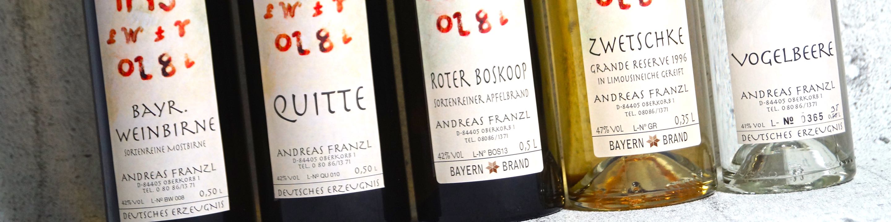 Der rote Boskop und der Schweizer Glockenapfel, Quitten und Kirschen, auch die Vogelbeere und sogar der gemeine Schneeball, können als Destillat wohl genossen werden. Schon lange findet man kaum noch Mispeln im heimischen Obstkorb, in Andreas Franzls Destillerie werden sie zu Köstlichem gebrannt. Bäuerliche Streuobstwiesen wurden bewahrt, die kostbaren und aromatischen Früchte bis zur Reifung zur Gänze der Sonne überlassen. Hier wird nur einmal Hand angelegt und zwar zur Ernte, denn nur aus unbehandeltem Obst entstehen die beispielgebenden Edelbrände des Meisters.